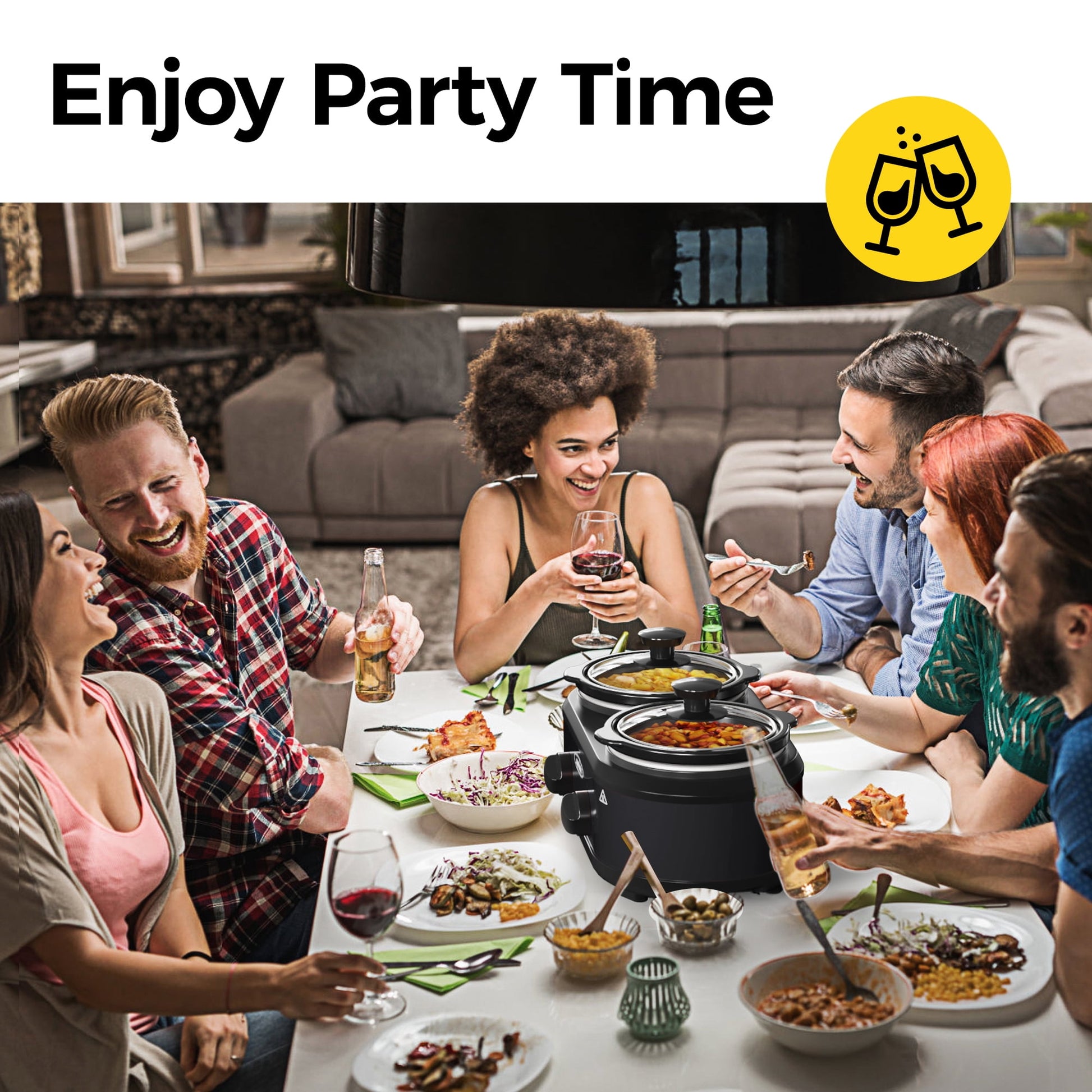 SUNVIVI double slow cooker is a kitchen appliance that can be used by anyone who enjoys cooking and wants to save time and energy. Two separate dishes can be prepared and served at the same time. Perfect for Meal sellers, Busy professionals and Health-consucious individuals. As a buffet warming server, it will be a welcome addition during any family gathering or holiday. The electric slow cooker features a non-stick, removable and stain proof stoneware crock insert ideal for easy prepping, serving and cleaning! There are 2 separate ceramic pots, allowing you to cook 2 different dishes at the same time. The two pot can be set to high, low temperature or keeping warm individually according to the ingredients you want to stew, ensuring your food cooked in the best cooking condition. The transparent lids allows you to view the condition of the food easily. The stainless steel pots are removable for easy cleaning. The lid and stoneware can be washed in the dishwasher or with hot, soapy water. This SUNVIVI 2 x 1.25 QT Crock Pot Food Warmer is ideal for office parties, family functions, and other social events, compact design perfect for camping, outdoors, etc..