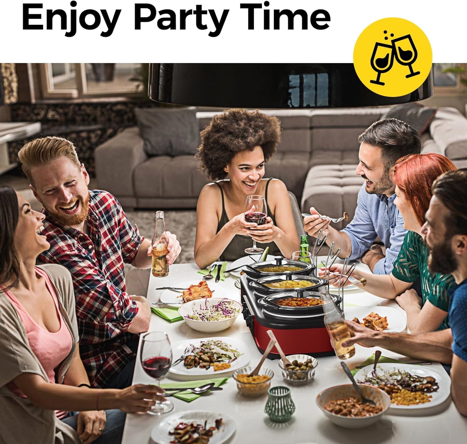 Sunvivi Triple Slow Cooker,3 Pot Food Small Mini Manual Slow Cooker with Adjustable Temp ,Removable Ceramic Pot,4.5 QT Red