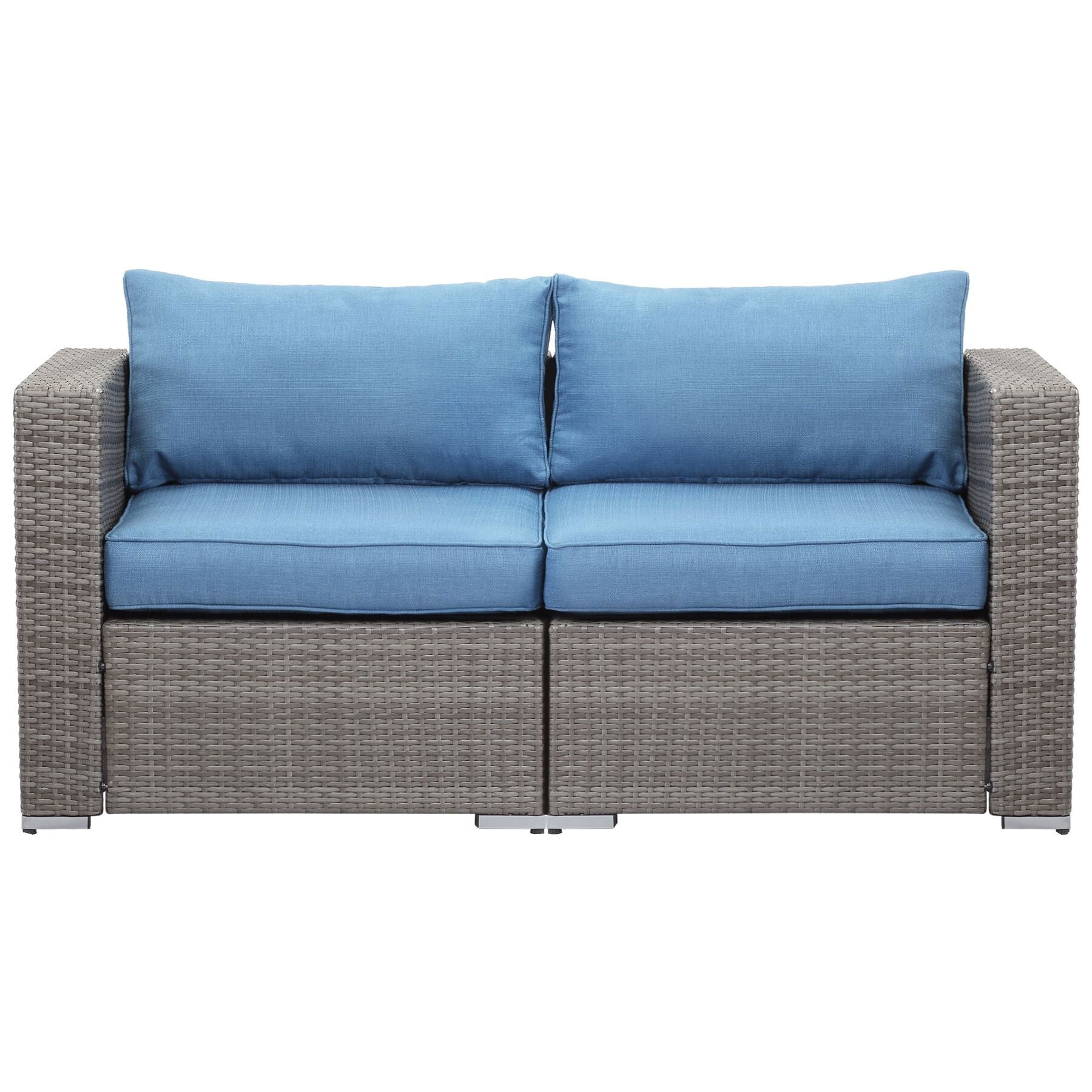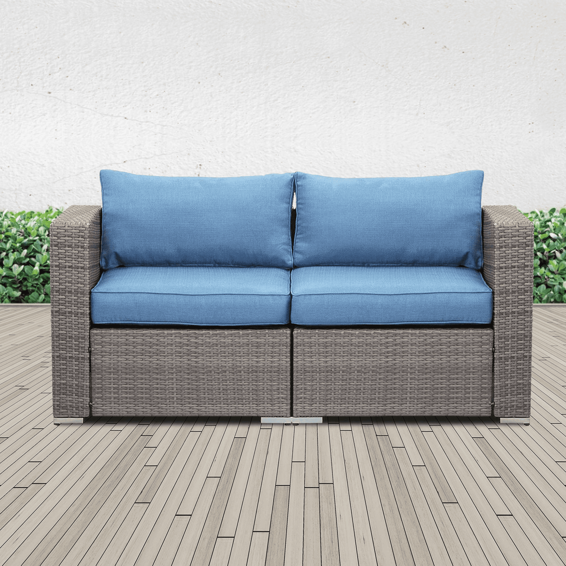 Style,comfort and quality combine in this 2-piece all-weather wicker patio deep seating loveseat.Built-to-last with a powder-coated, rust-resistant steel frame covered in all-weather wicker.Thick cushions provide extra comfort.Selected olefin fabric cushion cover with zipper makes outdoor furniture easy to maintain.UV treated and water-resistant to protect against sun, rain, snow, and dirt year round.Perfect for use on your patio, porch, sunroom, veranda or even poolside. Easy to coordinate with many decoration styles,now you can sit back and relax the day or evening away. Set includes 1 left-arm chair and 1 right-arm chair.