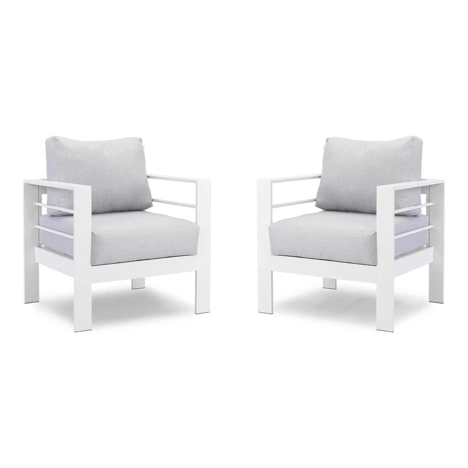 Superjoe Superjoe 2-Piece Outdoor Patio Aluminum Armchair Sofa with Cushions, White