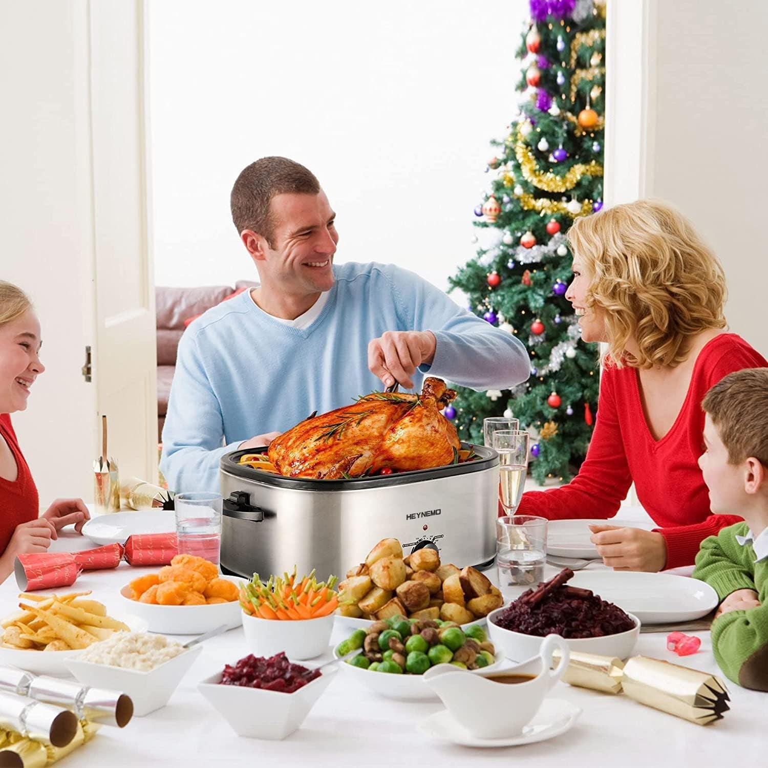 Large Capacity and Portable: High dome cover design. 20 Quart Electric Roaster Oven is perfect for baking, roasting, or boiling on holiday or at a party. Popular for indoor gatherings and courtyard BBQ!