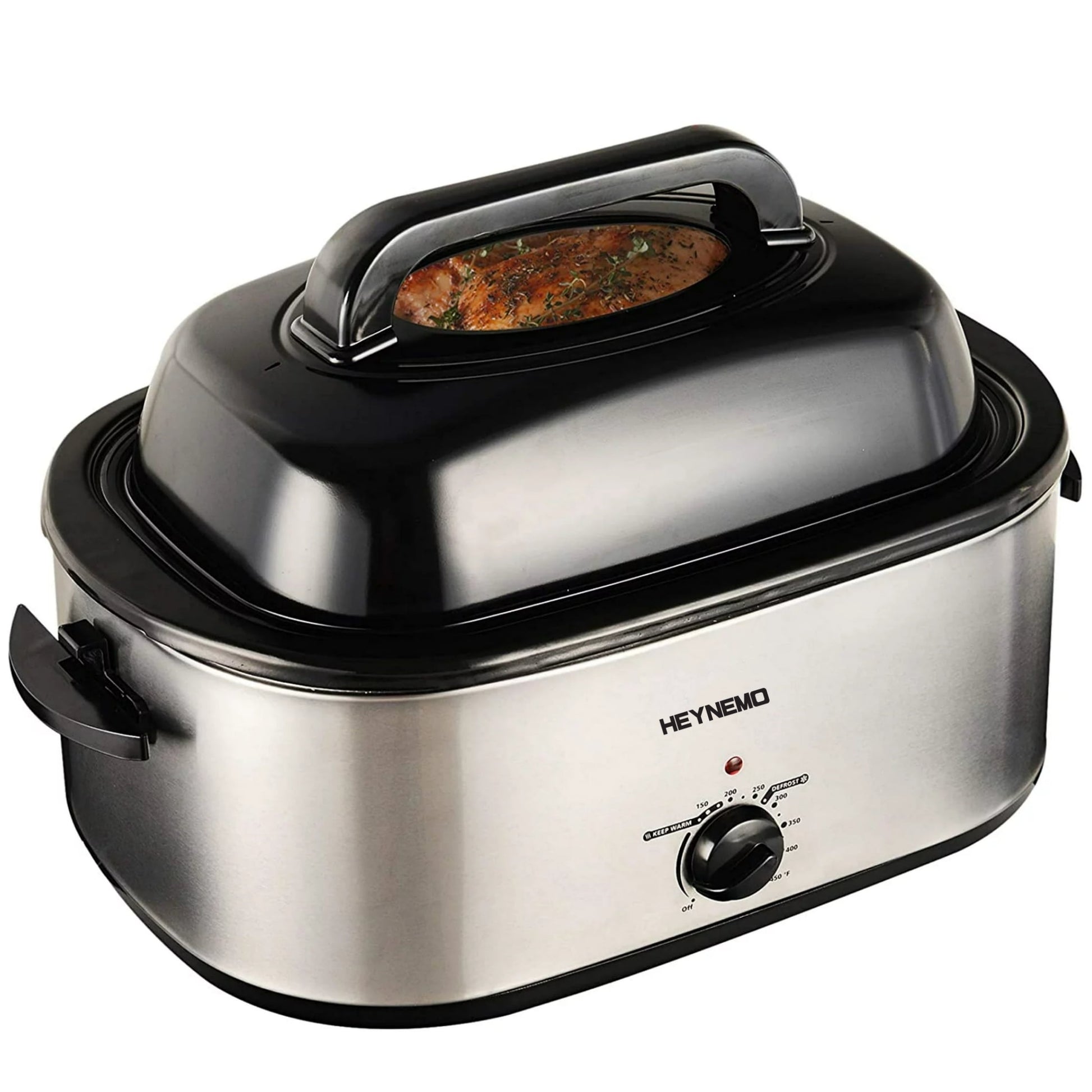 Superjoe 24 Quart Roaster Oven with Self-Basting Lid, Electric Turkey Roaster Oven with Removable Pan, Stainless Steel, Sliver