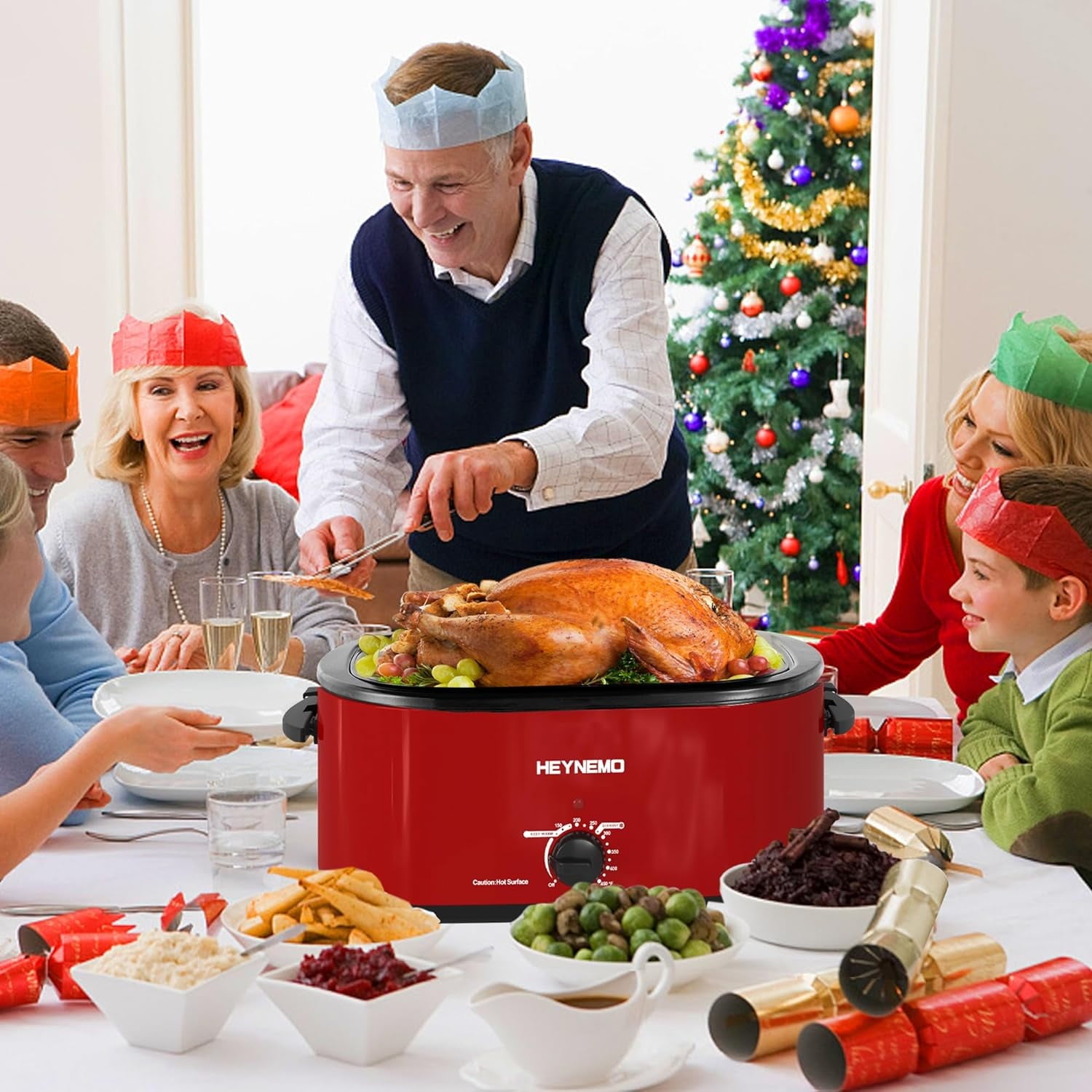 Superjoe 24 Quart Roaster Oven with Self-Basting Lid, Electric Turkey Roaster with Thaw & Warm Function, Adjustable Temperature Roaster With Removable Pan & Rack, Stainless Steel, Red