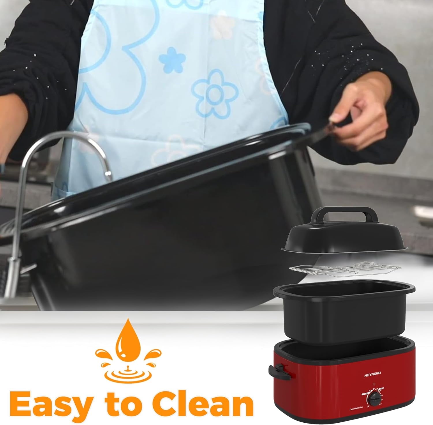The Electric Turkey Roaster has a unique three adjustment modes: 150F for warming, 275F for defrosting, 325F-450F for roasting. You can choose different modes and temperatures according to your needs, the electric roaster oven can be used for baking, roasting, slow cooking, not only for turkey, but also for beef, ham, potatoes and more!?