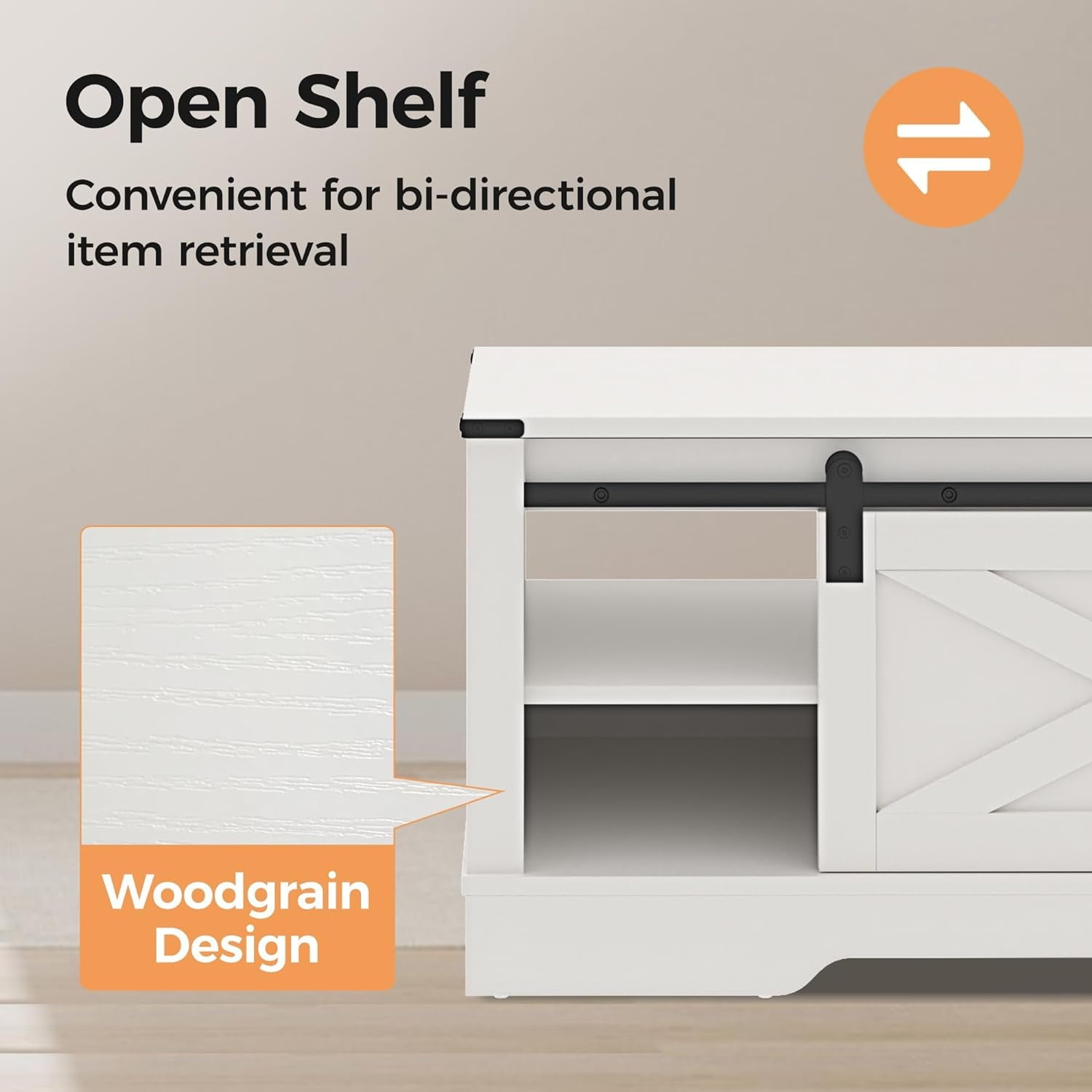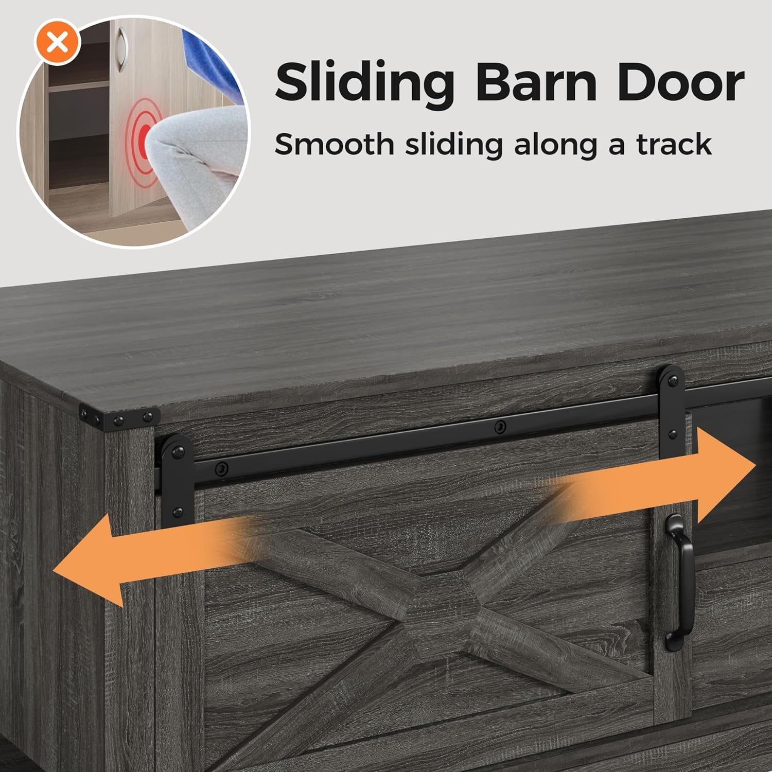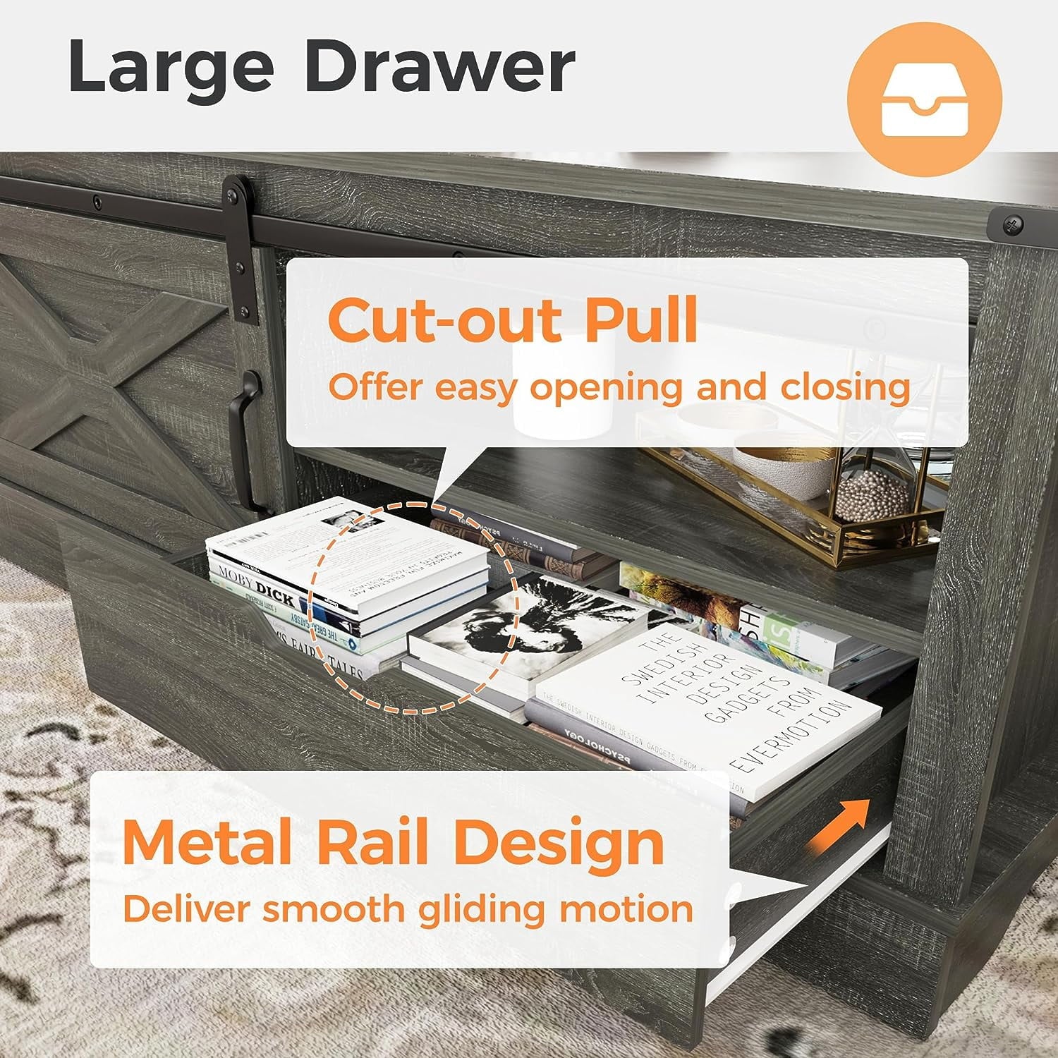 Superjoe 48" Farmhouse Coffee Table w/Storage & Sliding Barn Door Wood Rectangular Center Table w/Open Shelves for Living Room, Dark Gray