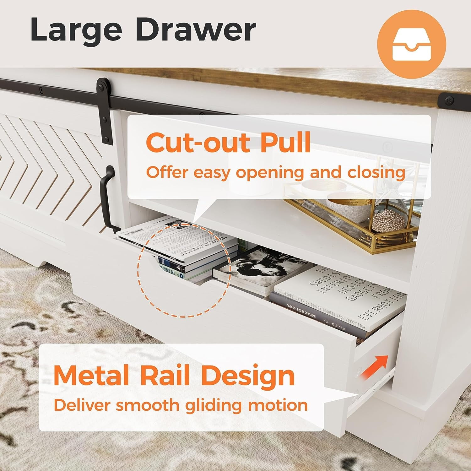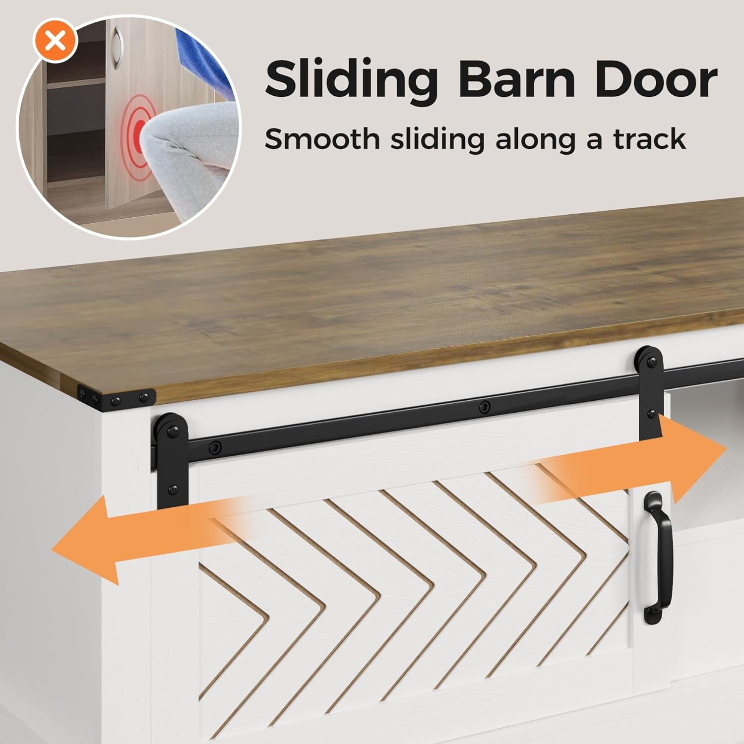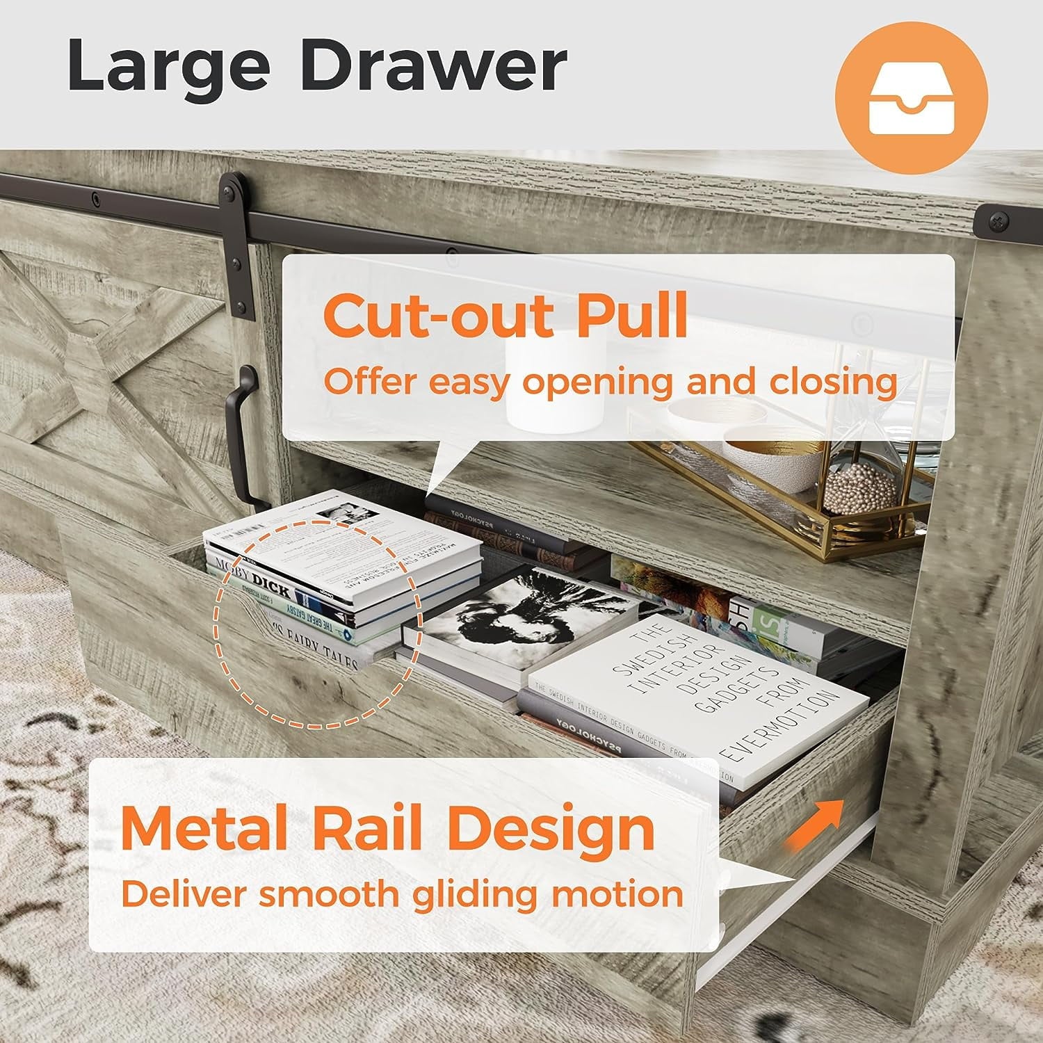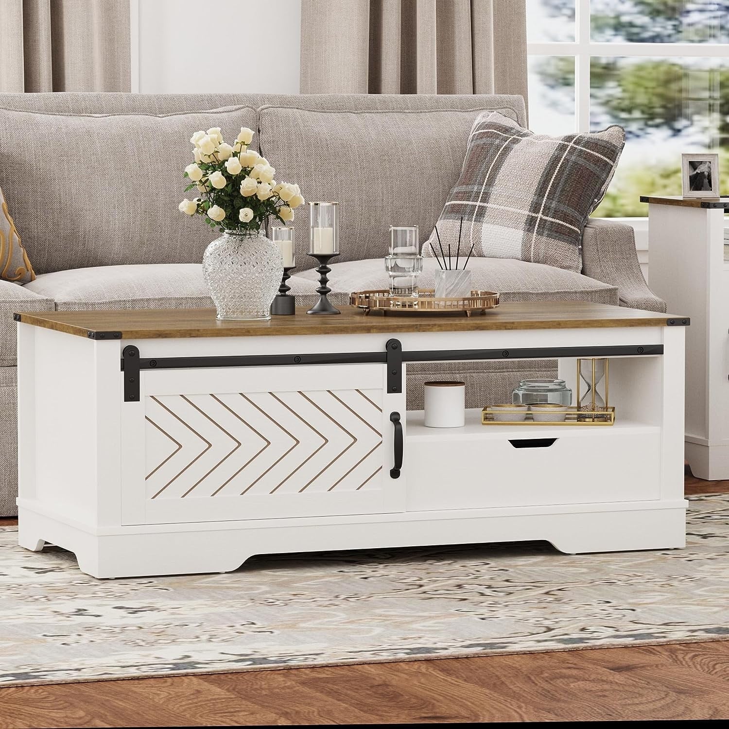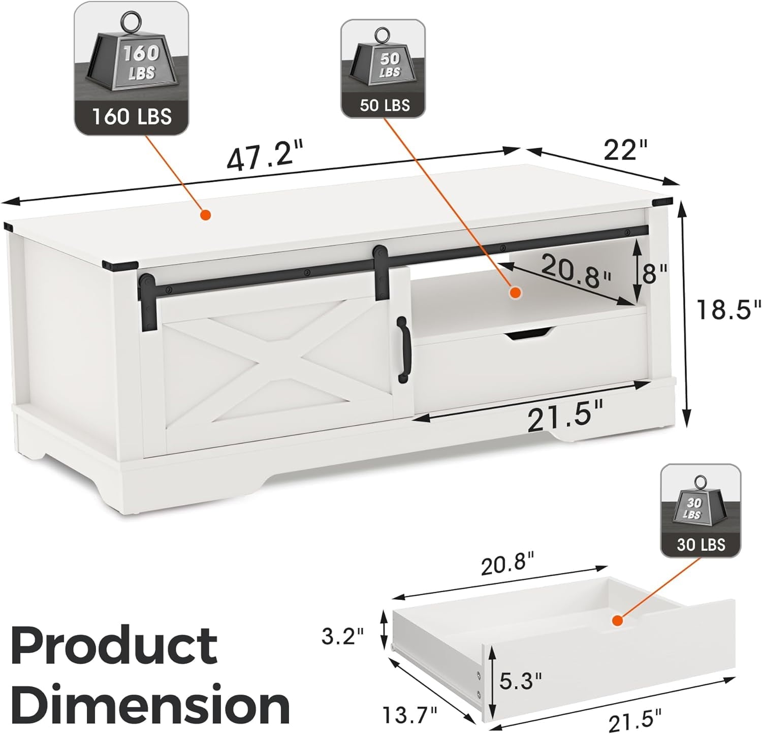 Sliding Barn Door: Our farmhouse coffee table features a single sliding door, enabling you to effortlessly hide personal items or display frequently used ones. In contrast to hinged doors, it saves space by eliminating the need for swinging.