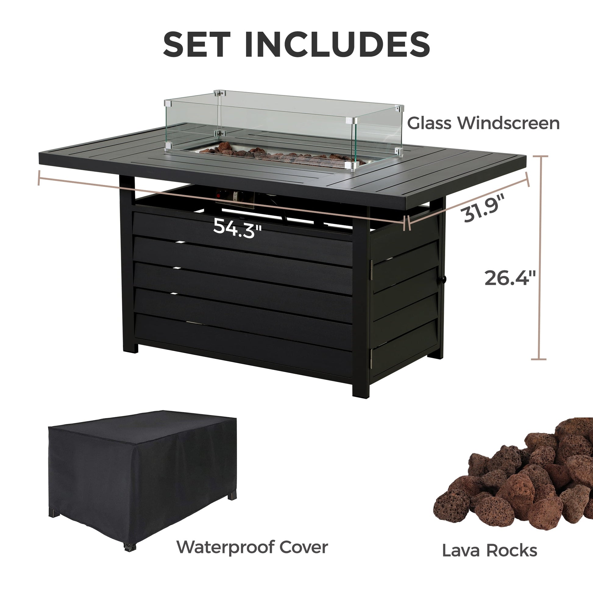 Superjoe 54” Rectangular Propane Fire Pit Table with Stainless Burner Waterproof Cover