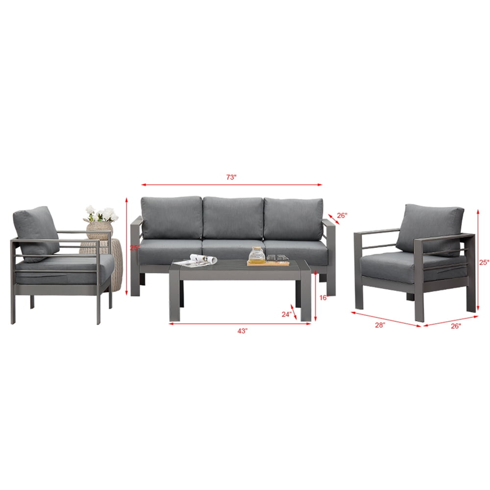Superjoe Aluminum Outdoor Furniture Set 4 Pcs Patio Conversation Sofa Set with Coffee Table,Gray