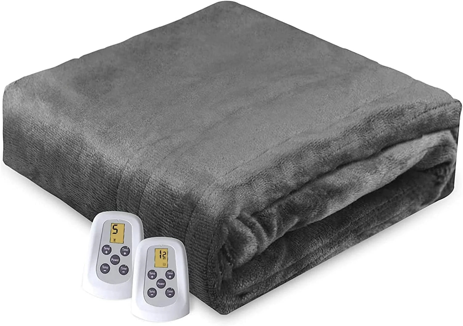 Superjoe Electric Blanket 90" x 84" Queen Size Heated Blanket, Dual Controllers 10 Heat Settings Auto-off Timer, Grey