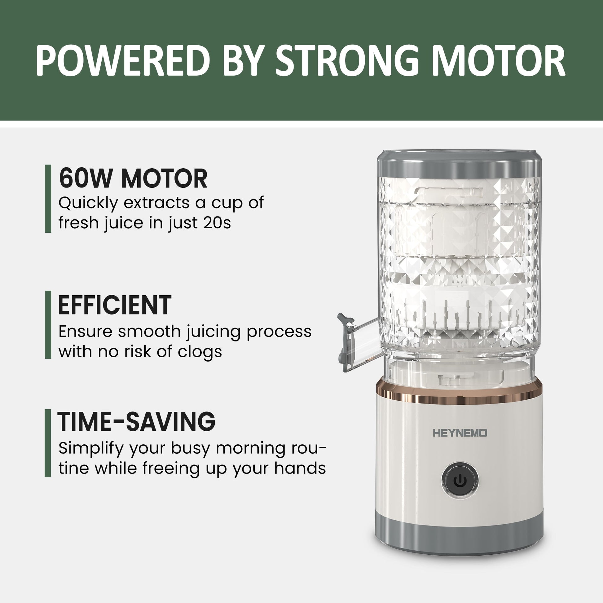 Introducing our all-in-one electric juicer, a versatile and efficient solution for extracting delicious flavors from a wide variety of fruits. From citrus fruits like oranges and lemons to tomatoes, grapes, watermelons, and more, this juicer machine effortlessly transforms them into fresh, flavorful juices that you can enjoy anytime. Compact and portable, our juicer is your perfect on-the-go companion, fitting easily into your bag. It features a 60-watt motor, allowing you to enjoy a cup of juice in just 20 seconds. It's also easy to clean with removable parts. Experience the convenience and versatility of our electric citrus juicer, designed to enhance your daily juice experience with ease.