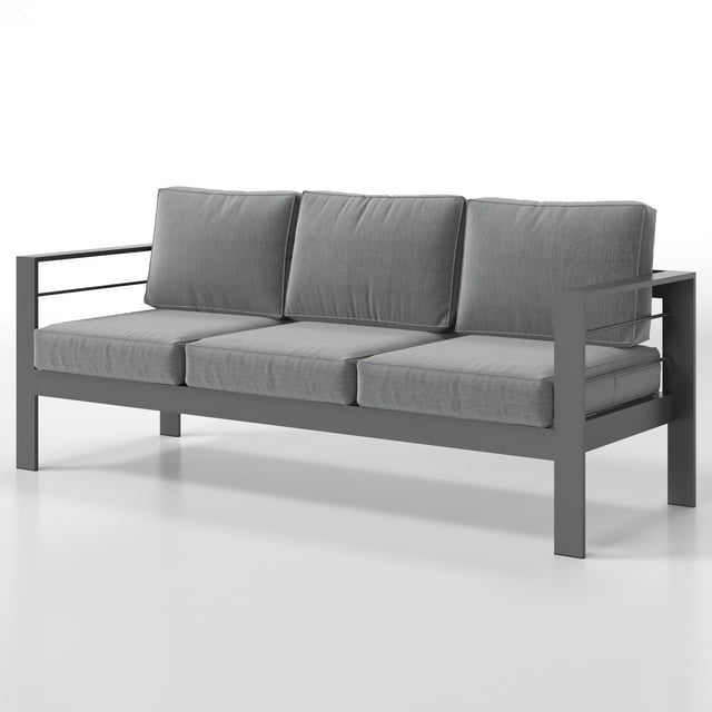 Superjoe Outdoor Patio 3-Seat Aluminum Sofa Couch Furniture with Dark Grey Cushions, Grey