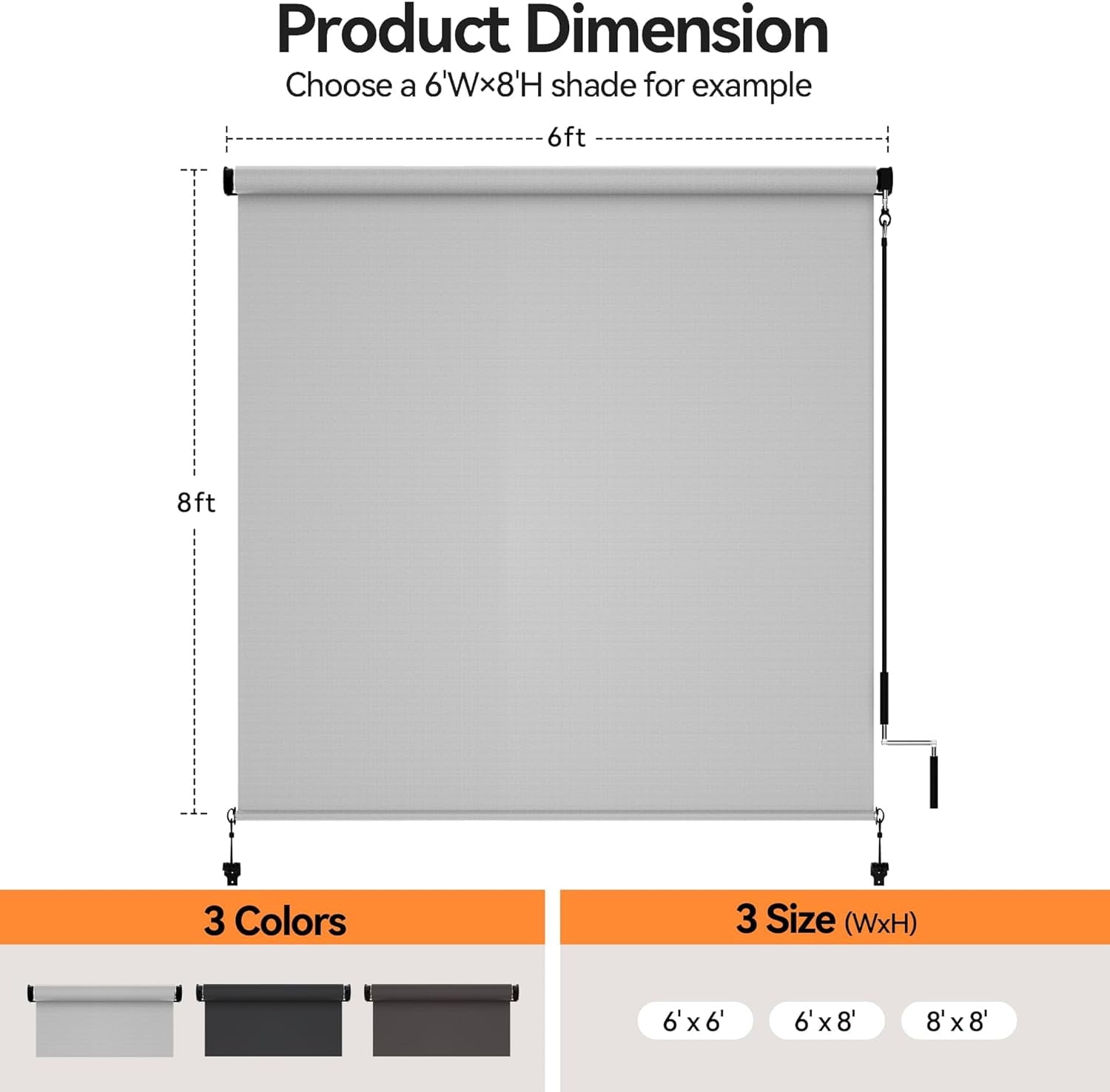 Superjoe Outdoor Roller Shades for Patio New Material with 95% UV Protection, 6'L x 6'W Blinds Roll Up for Gazebo Porch, Deck, Pergola, Blockout Waterproof Protect Privacy, Grey