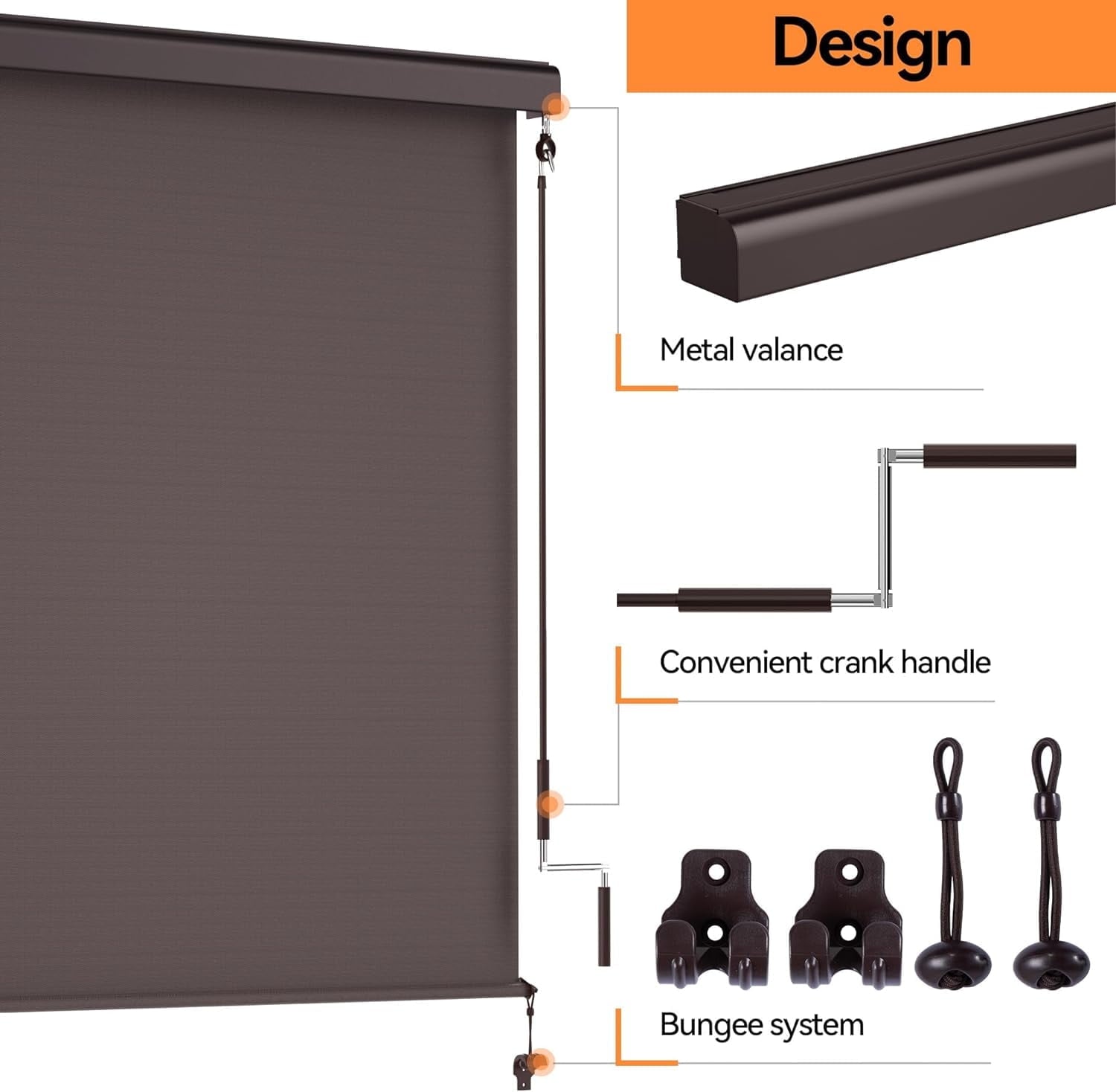 Superjoe Outdoor Roller Shades with 95% UV Blockout, 6'L x 6'W Exterior Cordless Patio Shades Roll Up Outdoor Blinds for Porch Gazebo, Blockout Waterproof Protect Privacy, Brown