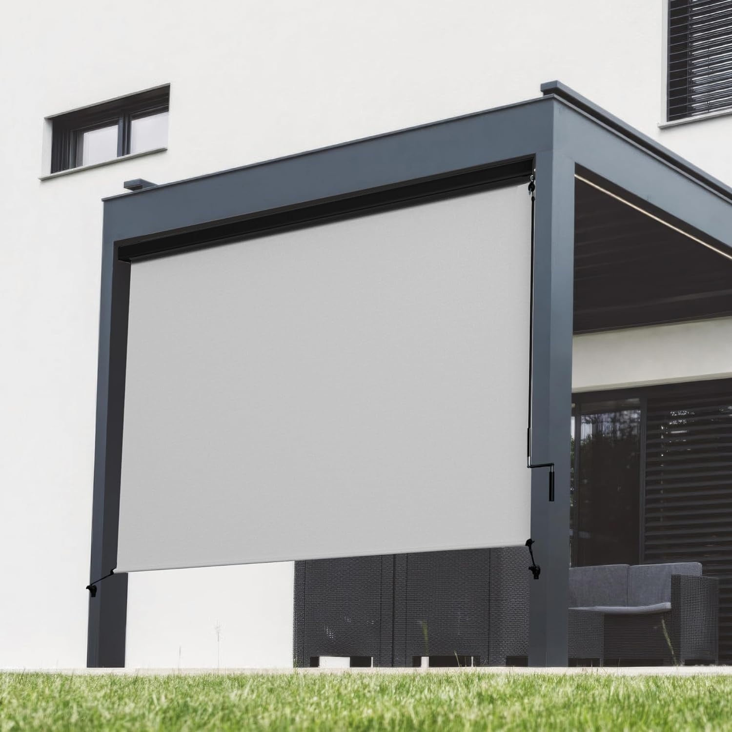 Superjoe Outdoor Roller Shades with 95% UV Blockout, 6'L x 8'W Exterior Cordless Patio Shades Roll Up Outdoor Blinds for Porch Gazebo, Blockout Waterproof Protect Privacy, Grey