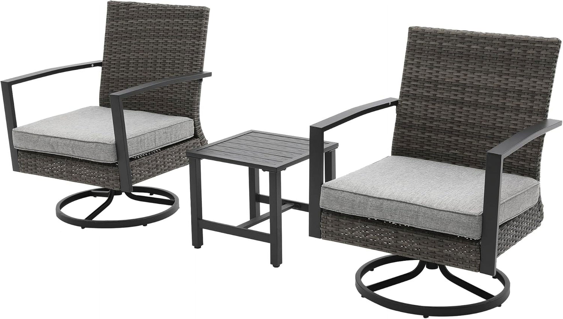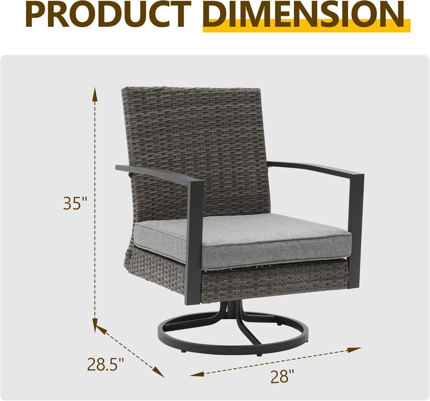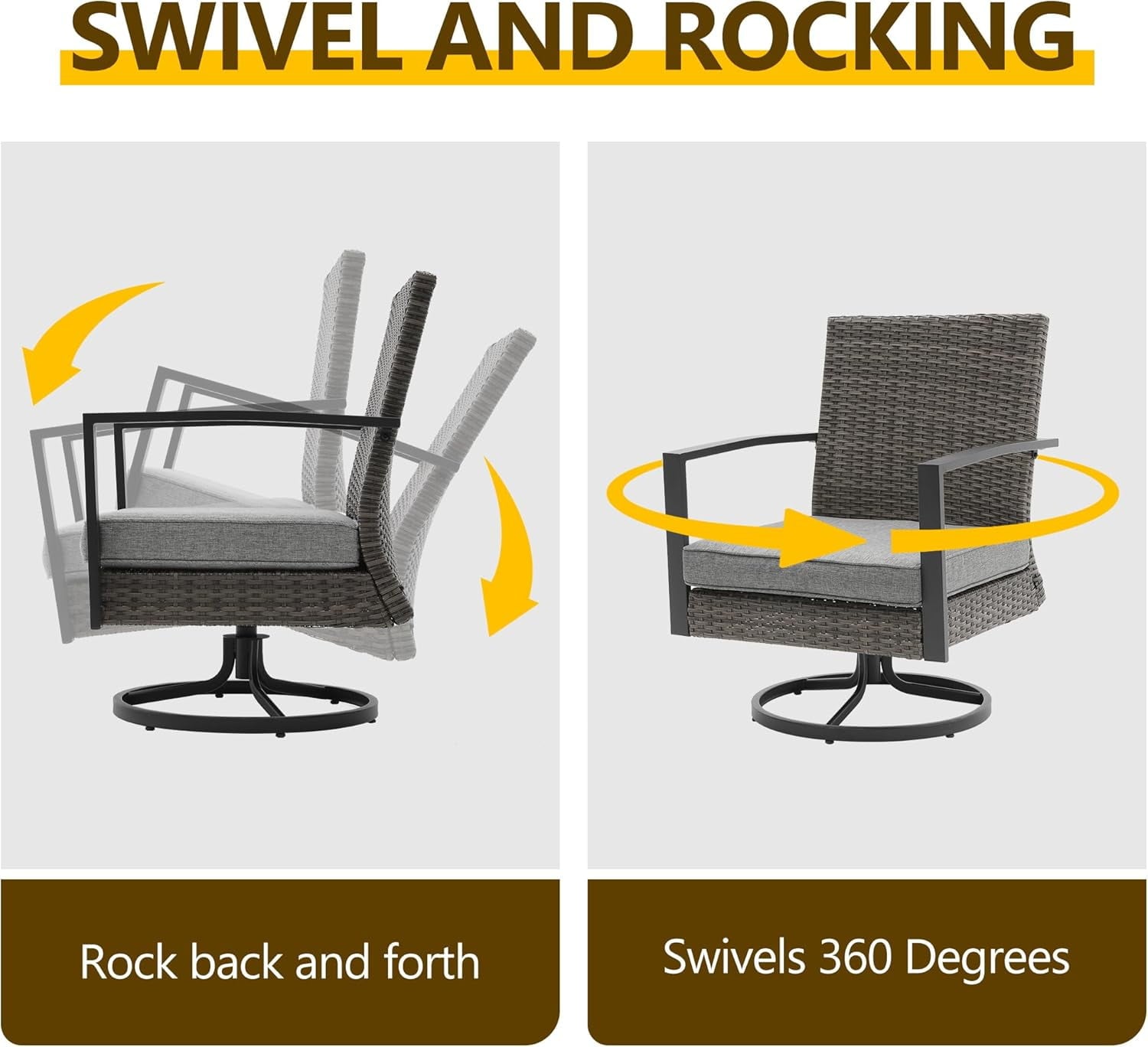 Superjoe Patio Swivel Dining Chairs with 360-Degree Rotating, All Weather Rattan Chairs with Water-Resistant Cushions & Metal Frame, Table, Modern Outdoor Rocking Chair for Porch, Bistro, Balcony, Grey
