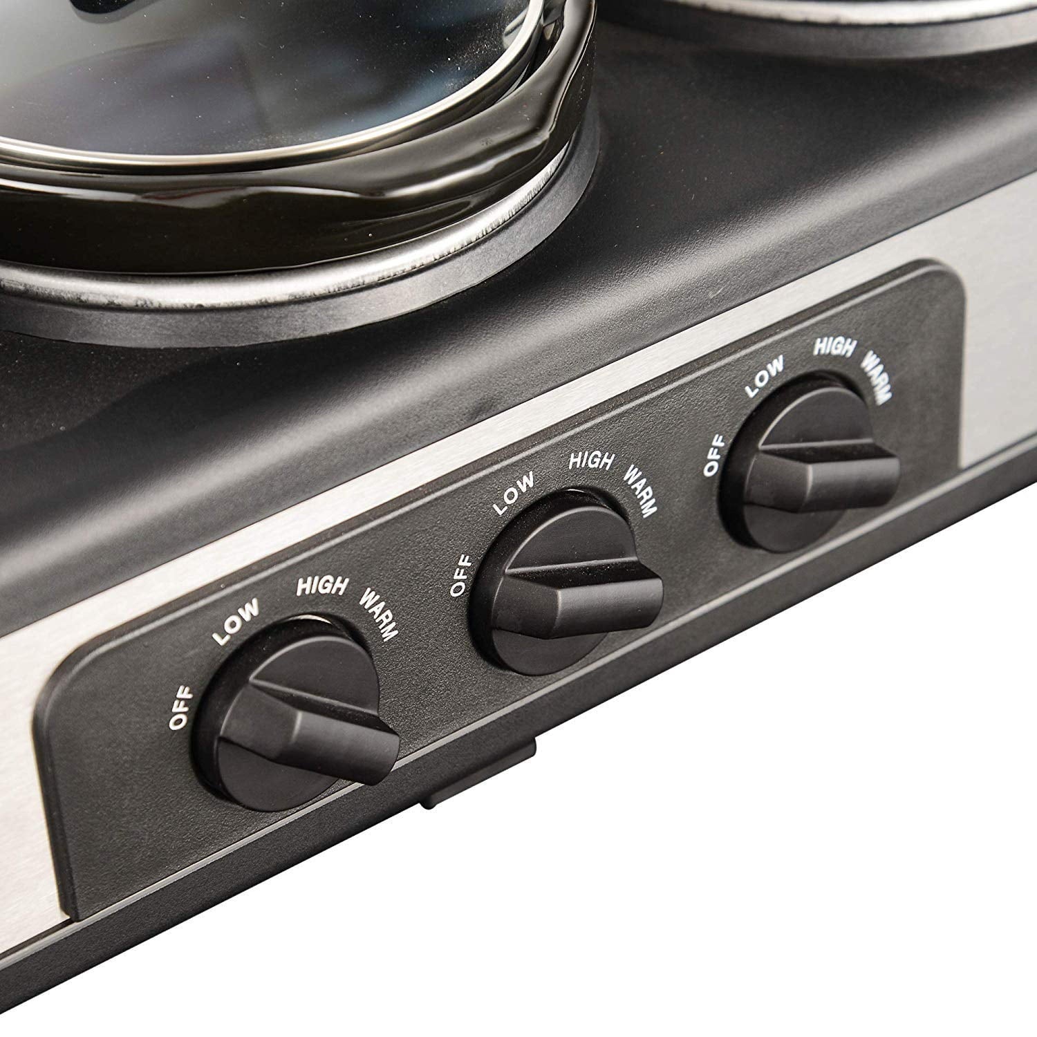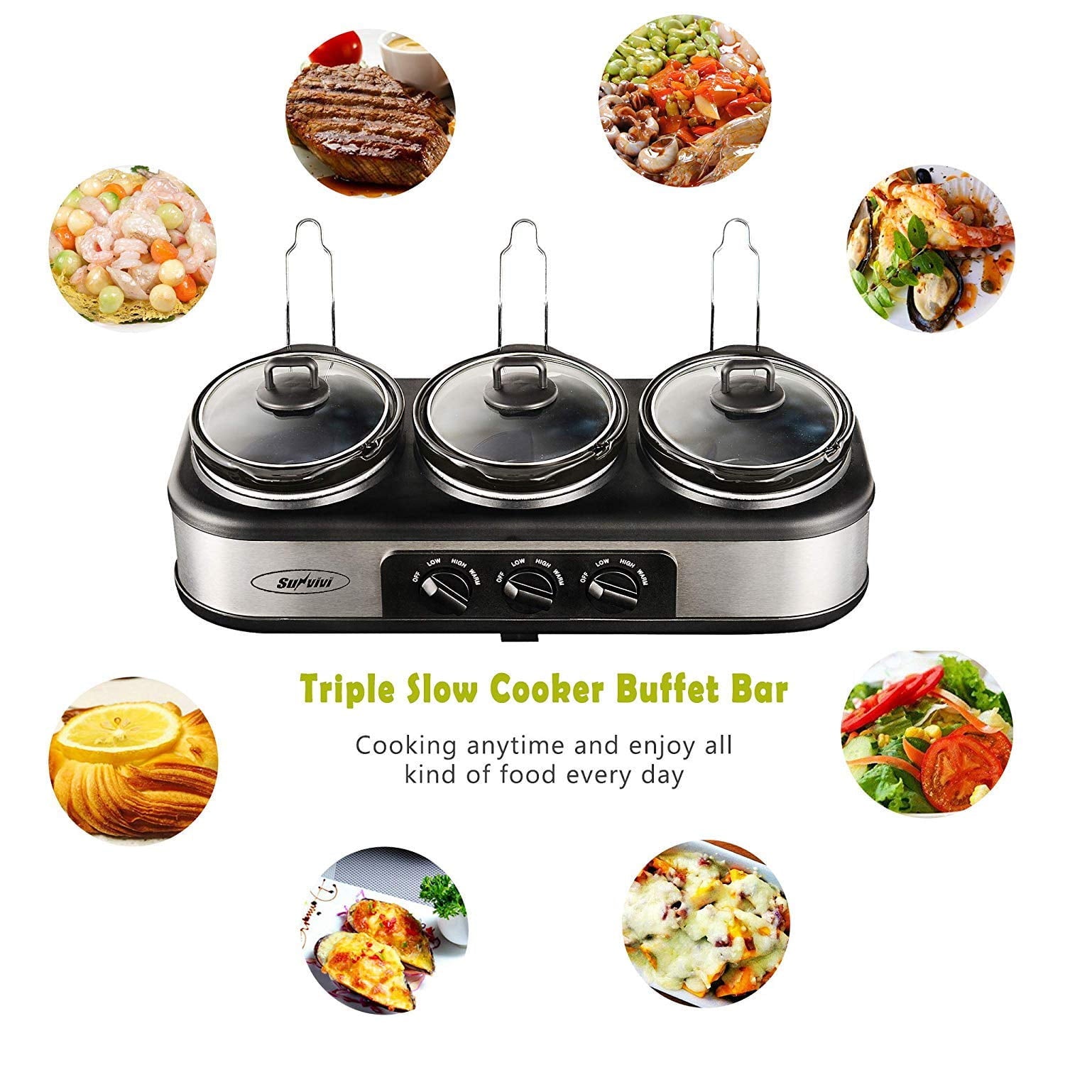 Superjoe r 3x1.5 Quart 3 Basins Removable Ceramic Pots Food Warmer Stainless Steel Triple Slow Cooker Buffet Serve