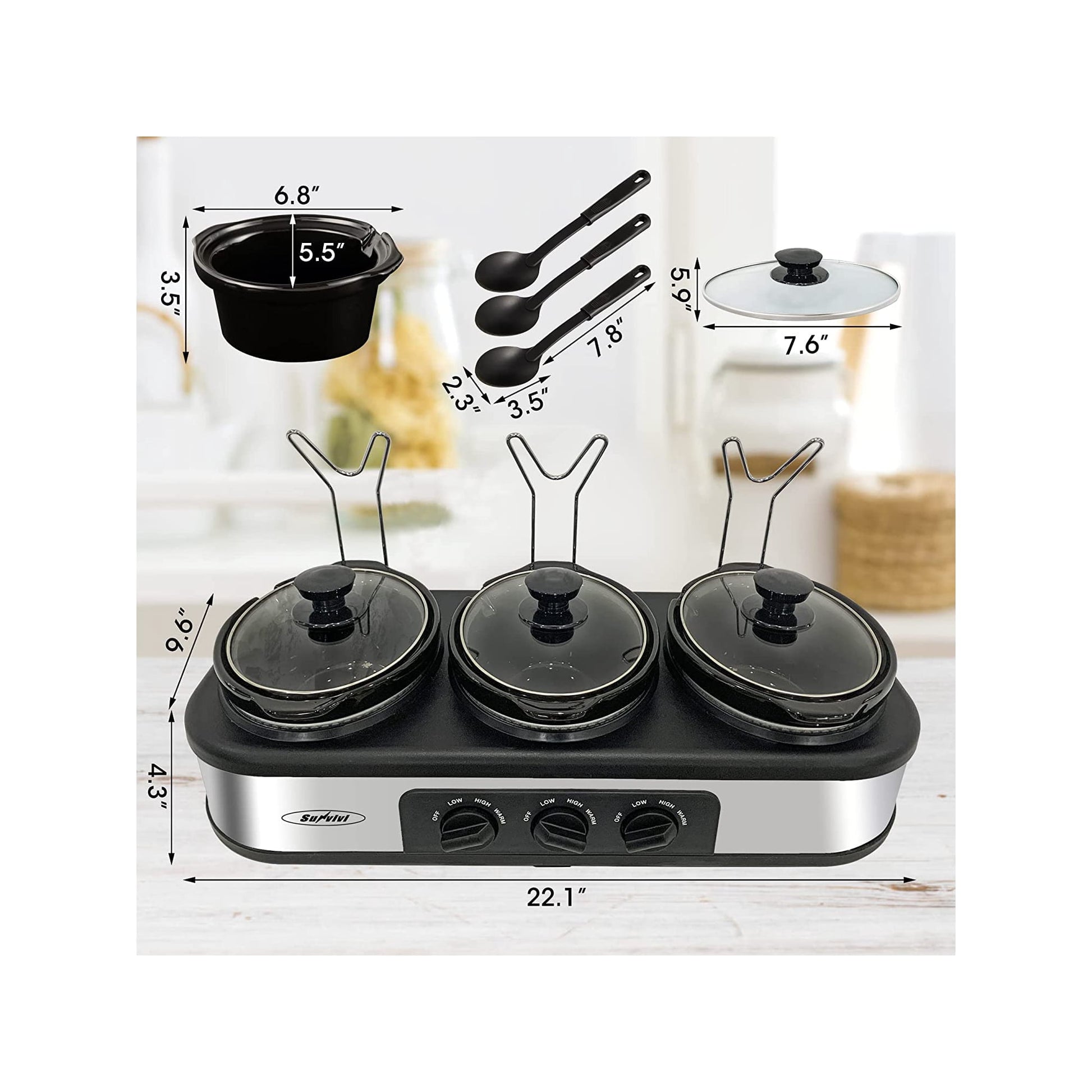 Superjoe Triple Slow Cooker 3x1.5 Quart Electric Food Warmer Pot Buffet Server, Adjustable Temp Removable Ceramic Pots Lid Rests