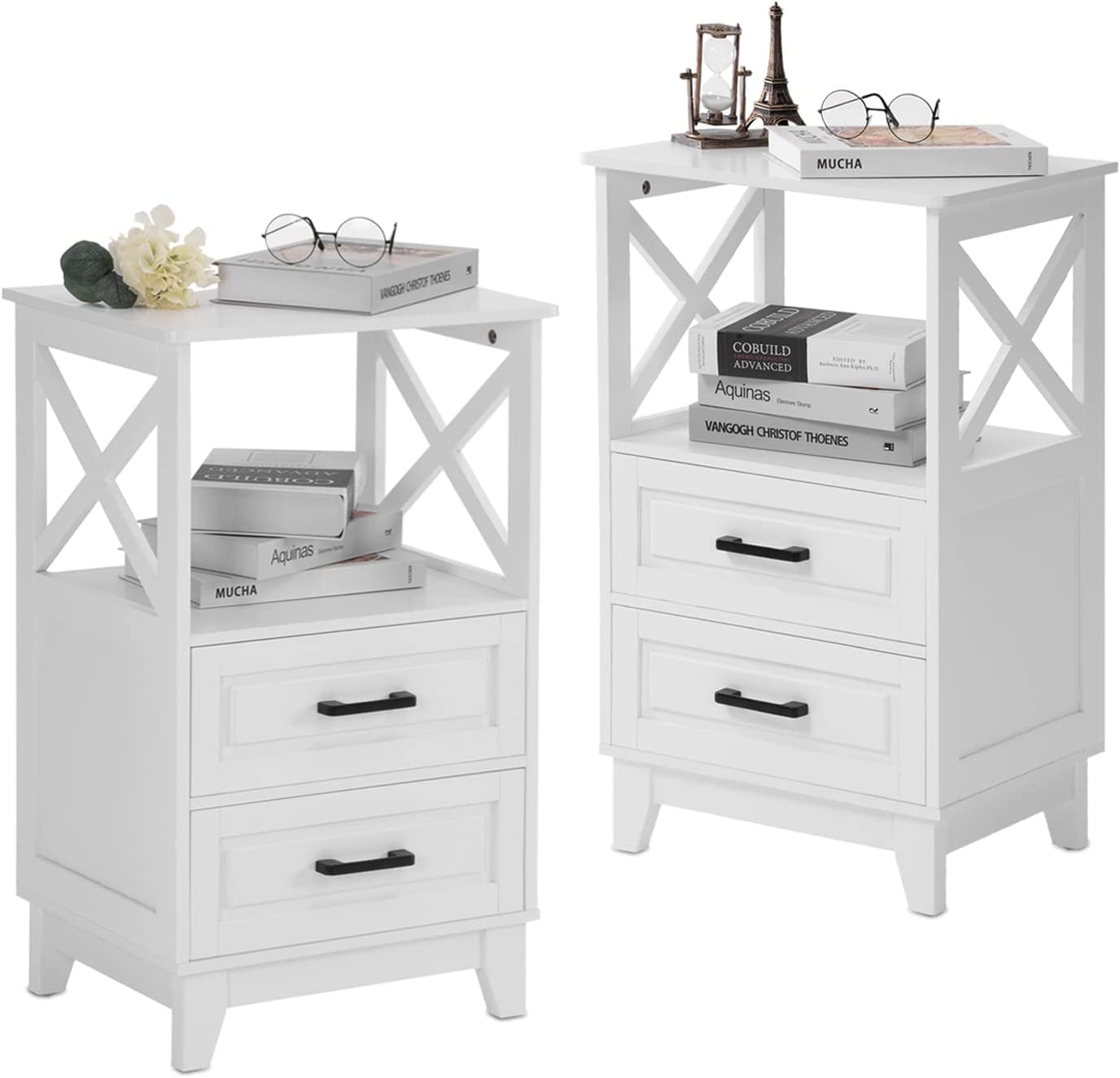 Multiple Storage Space: Our white bedroom nightstand comes with 2 drawers with handles, giving you plenty of space to organize your stuff and helping you get a clutter-free space. The open upper shelf can be used to display your photos, magazines, or a collection of knickknacks