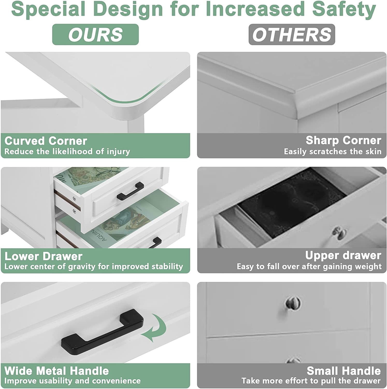 Stylish and Modern Design: Simple pure white look of the nightstand for the bedroom will not conflict with the original furniture and decoration style. The elegant style will add freshness and create a charming atmosphere to your home. The lower drawer makes the center of gravity of the whole nightstand move down. Even if it bears a lot of heavyweights, it is not easy to fall down