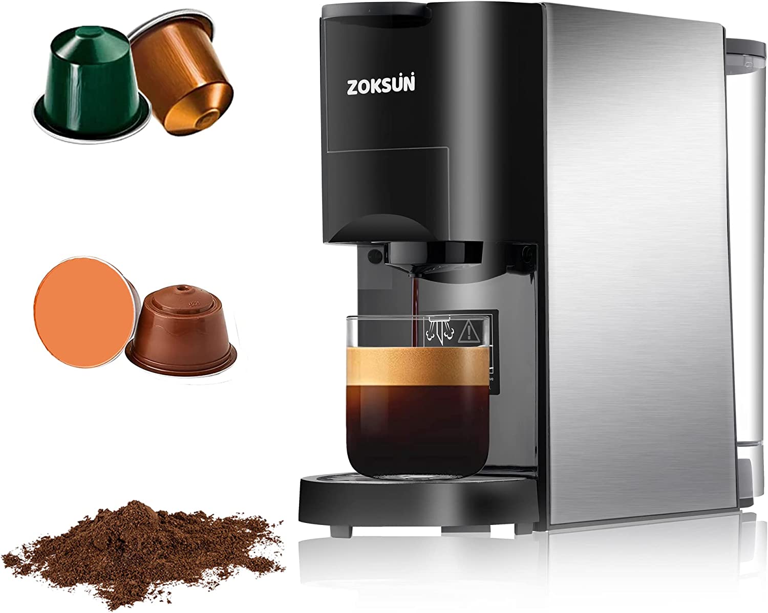 3 in 1 Multi Capsule Espresso Coffee Machine Compatible with Nespresso Original Dolce Gusto and Ground coffee, 19 Bar Espresso Machine for Home with Spoon, 27oz Removable Water Tank, Black
